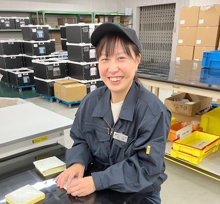 私は組立部署で、製品の検査・梱包をはじめ、様々な材料を専用治具を使って組立を行っています。正確さとスピードが求められる作業ですが、日々工夫しながら取り組んでいます。